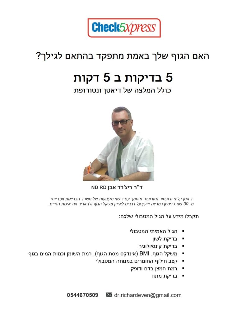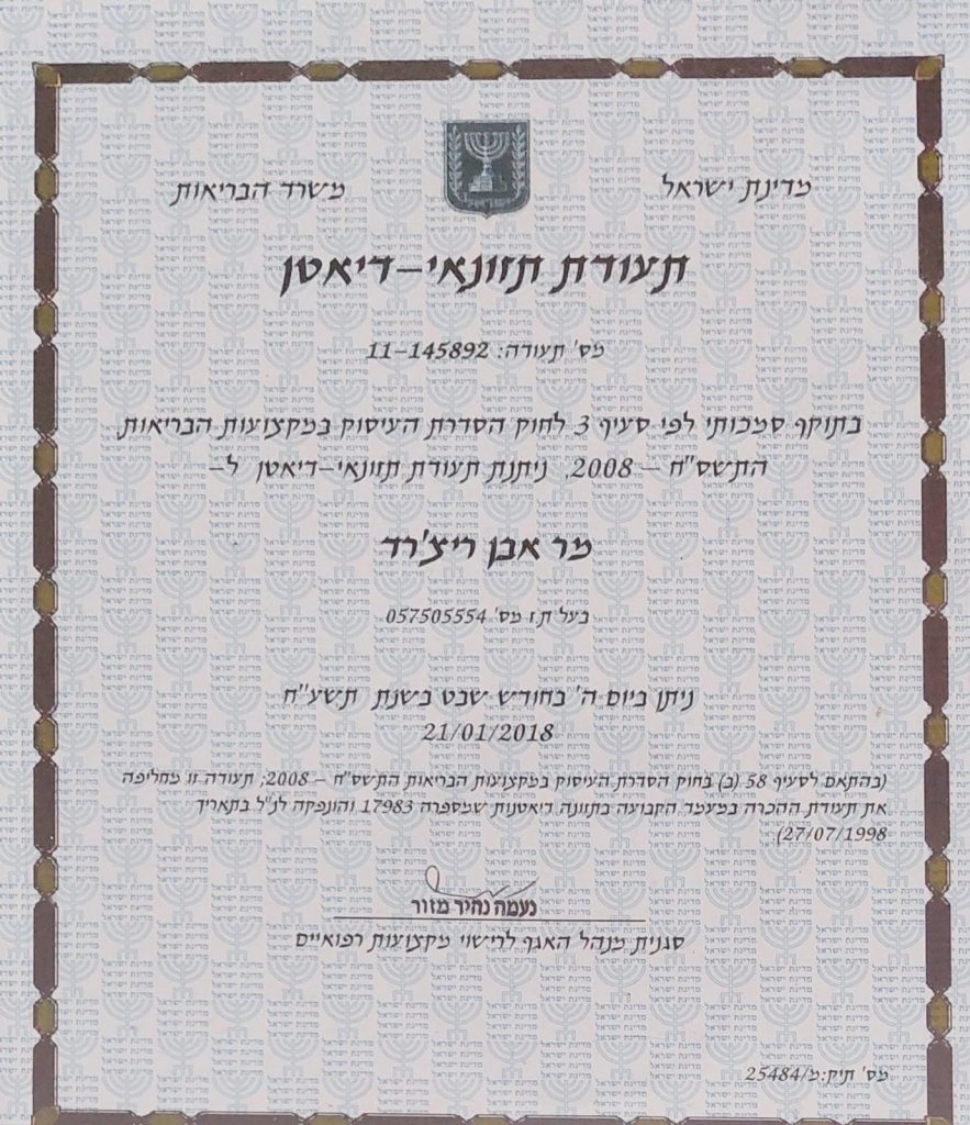 ד"ר ריצ'רד אבן, דיאטן עם רישיון משרד הבריאות ודוקטור נטורופאתי. ניסיון של יותר מ- 30 שנה של טיפול אישי בסובלים מהשמנה יתר, מאפשר לי לגבש תוכנית הרזיה מצליחה כאשר מטרתה העיקרית היא הרזיה אמיתית לטווח ארוך.